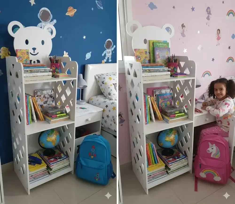 ومع منظم الكتب والأدوات المدرسية بشكل دب لطيف،